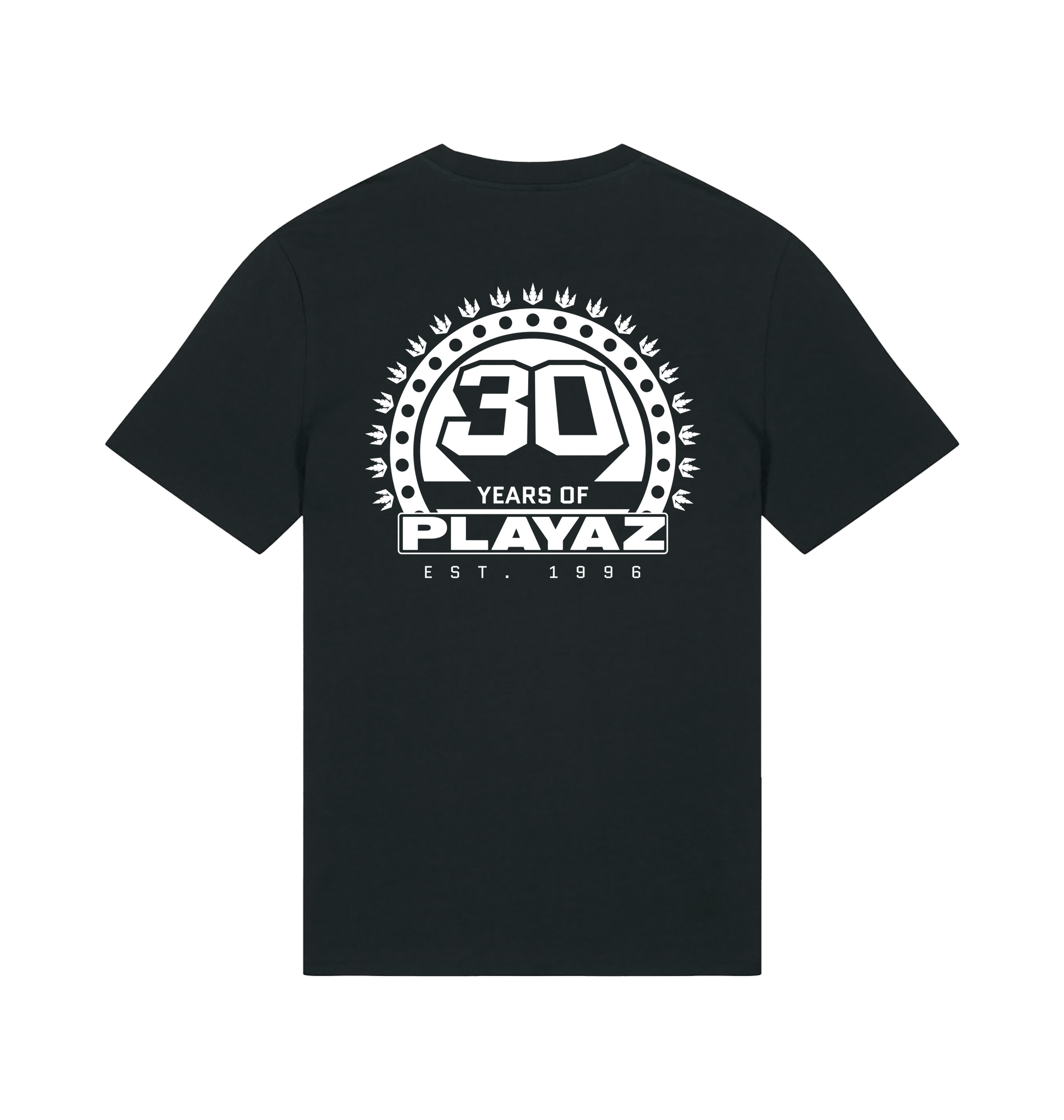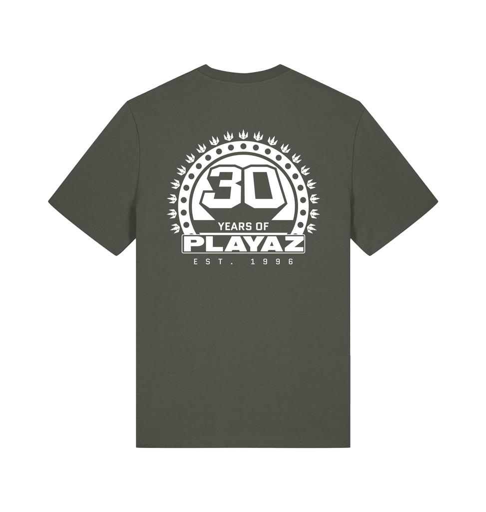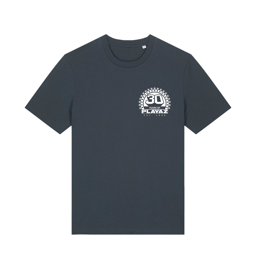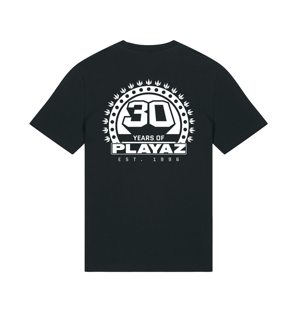 This premium organic t-shirt features a black 30 Years Of Playaz Logo on the left breast and big on the back.