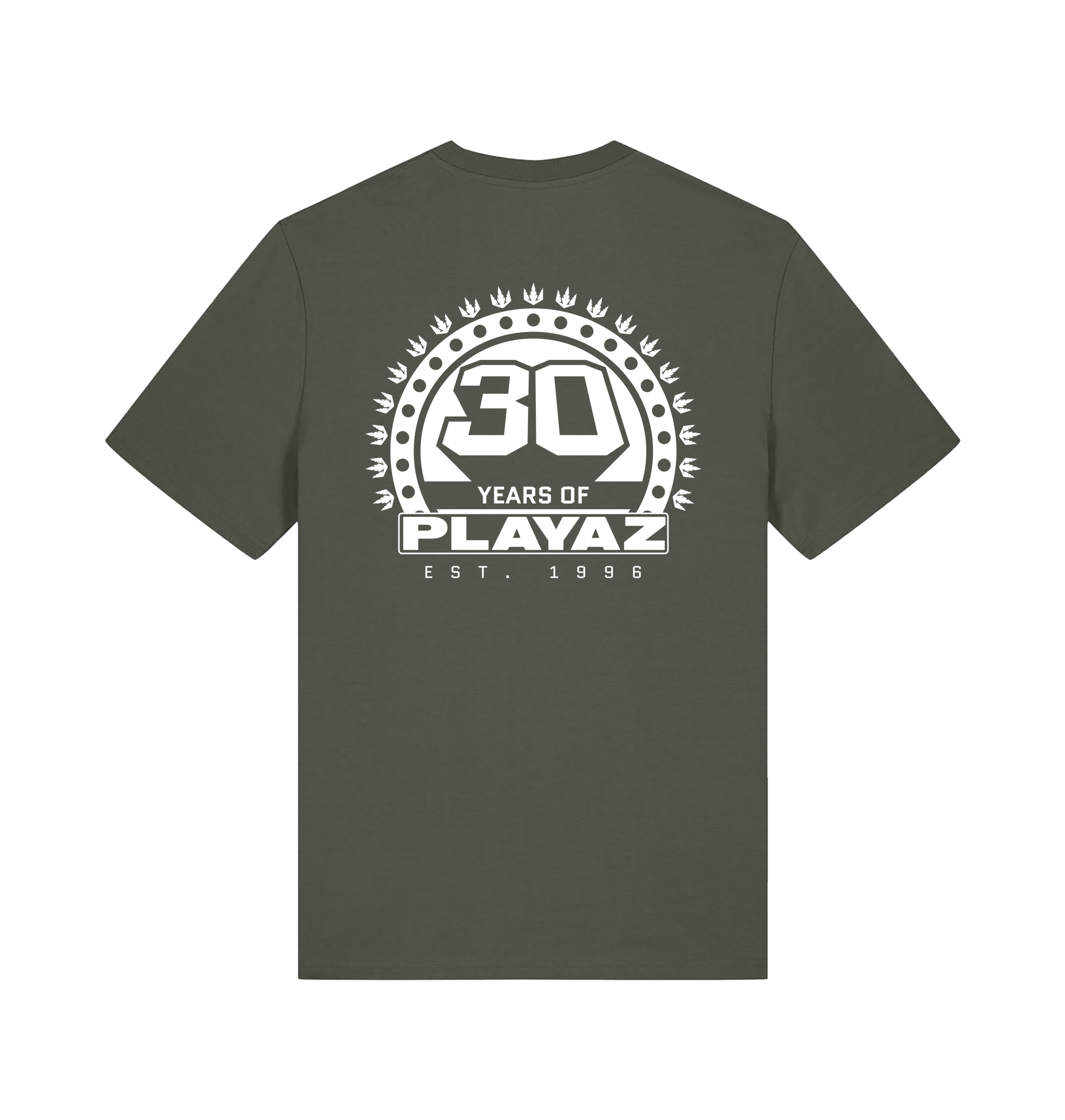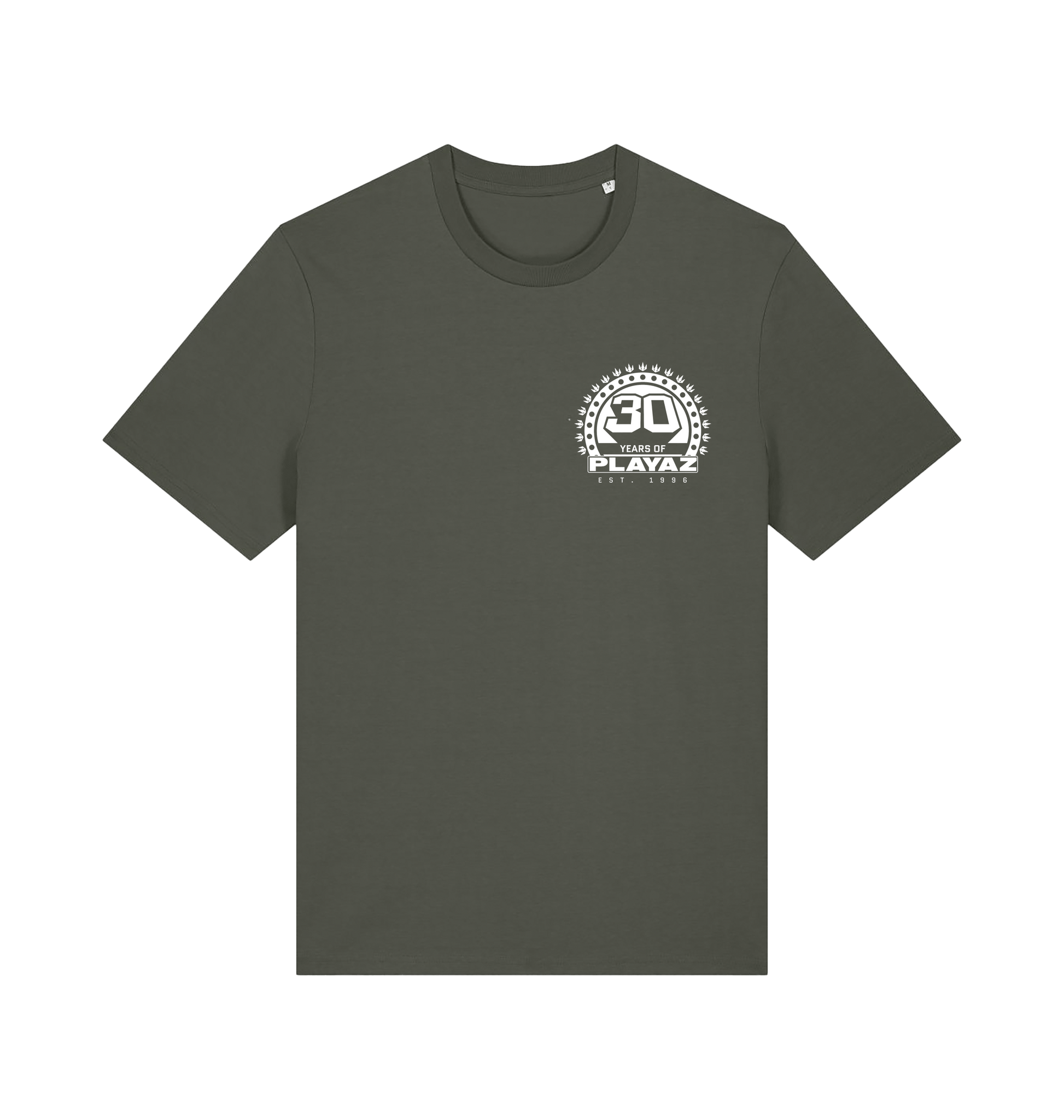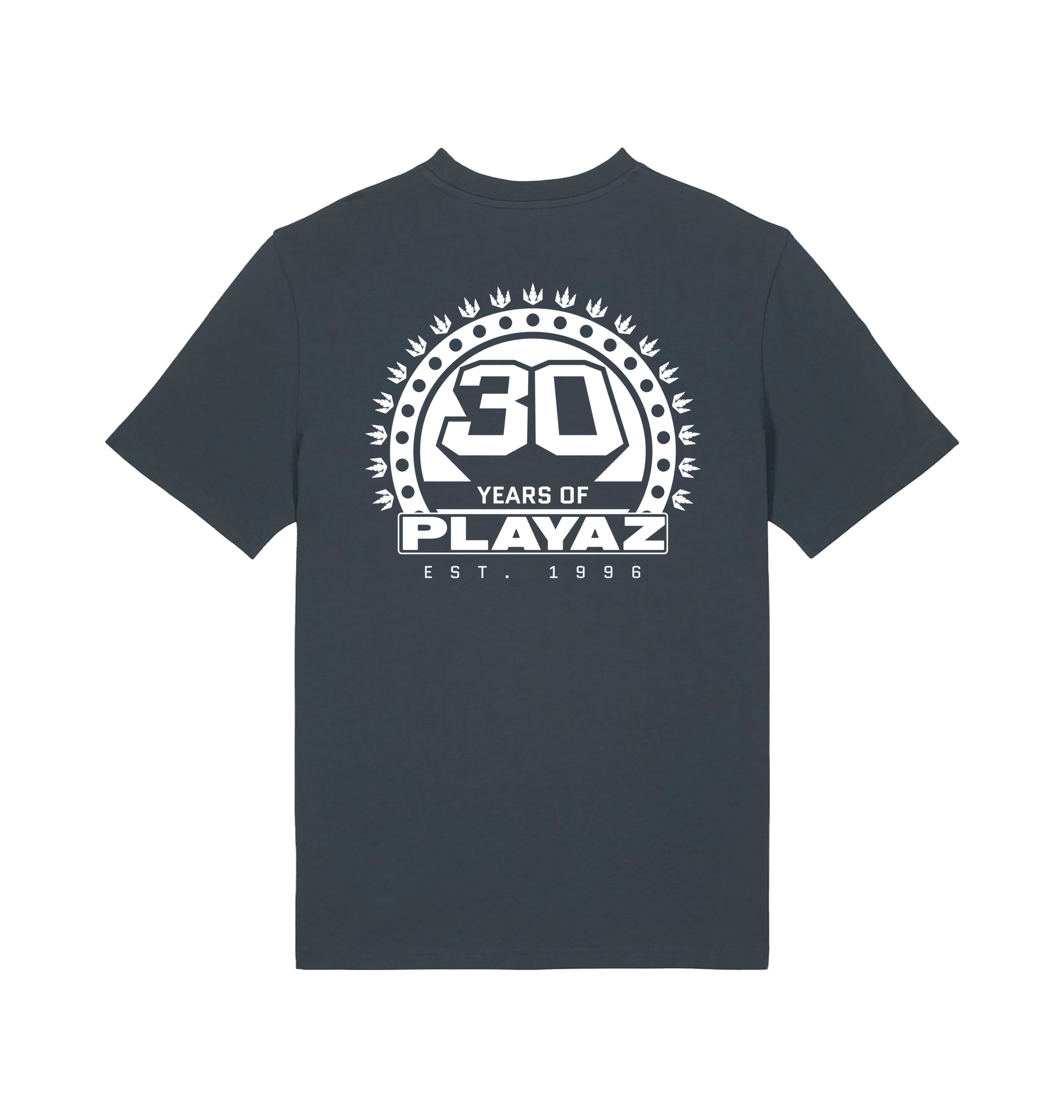 This premium organic t-shirt features a black 30 Years Of Playaz Logo on the left breast and big on the back.