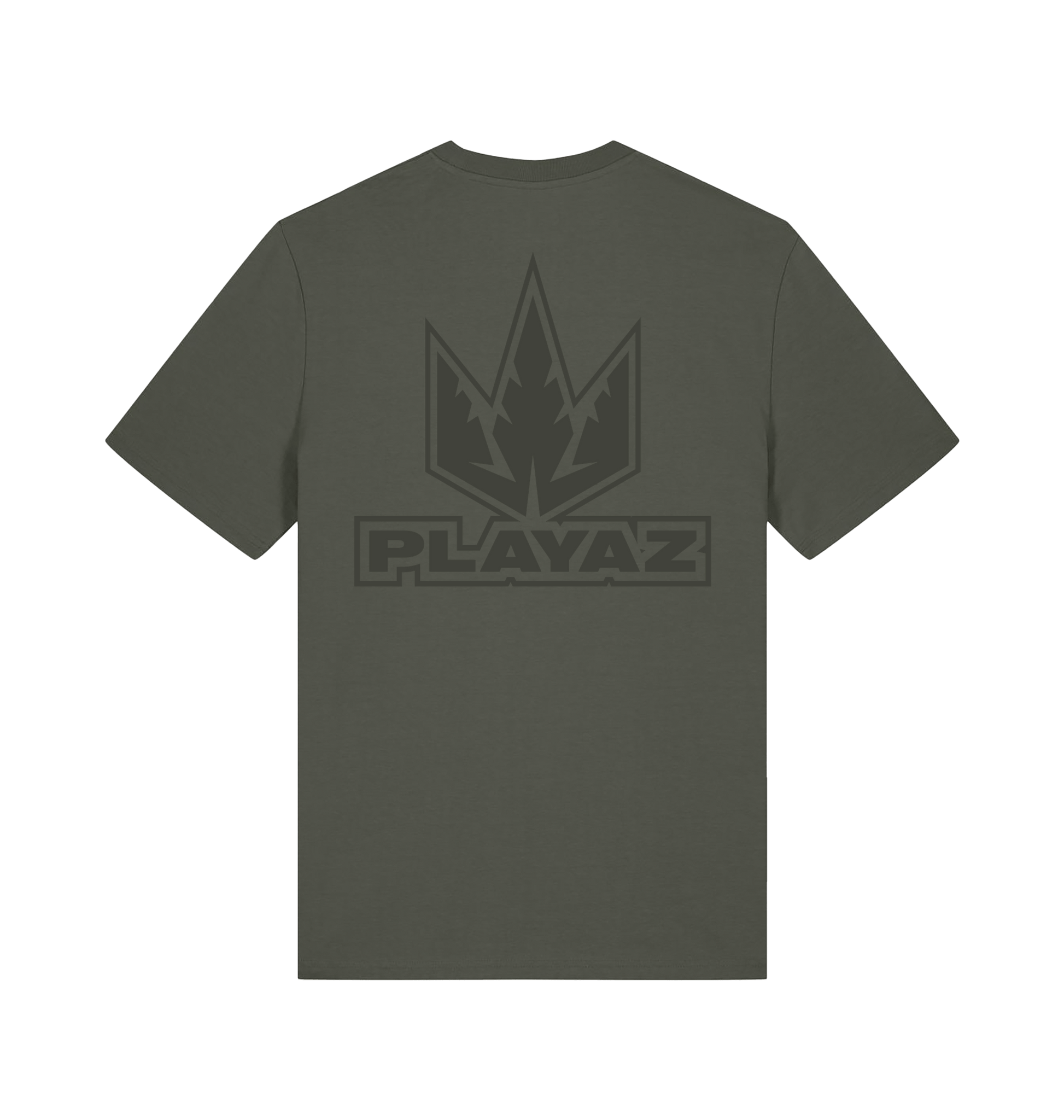 This Khaki premium organic t-shirt features a tonal green Playaz logo on the left breast and a big logo on the back.