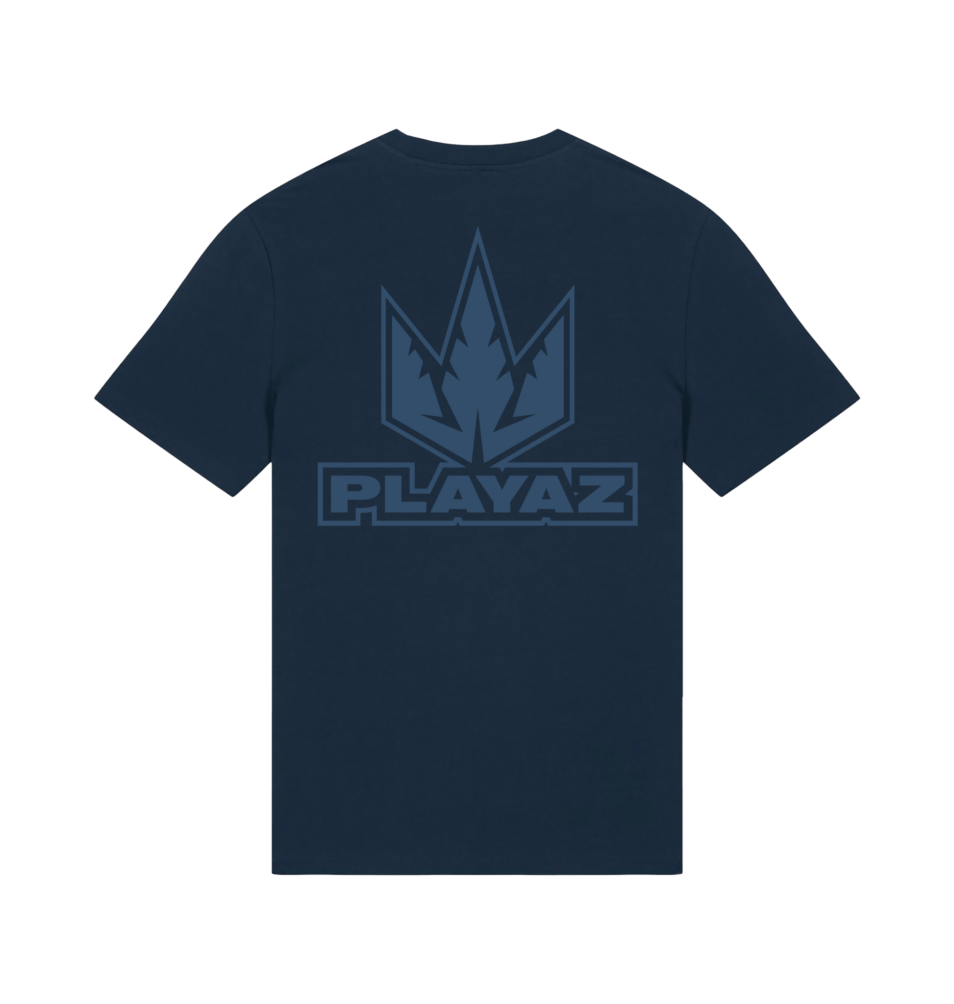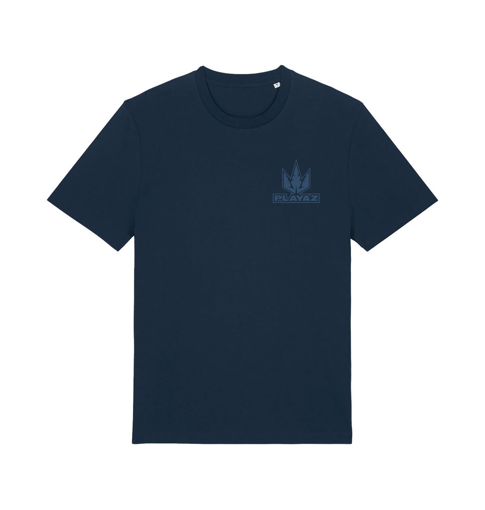 This Navy premium organic t-shirt features a tonal blue Playaz logo on the left breast and a big logo on the back.