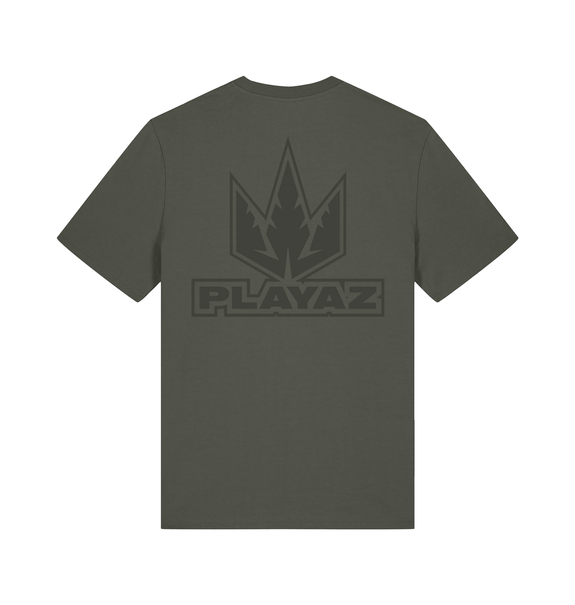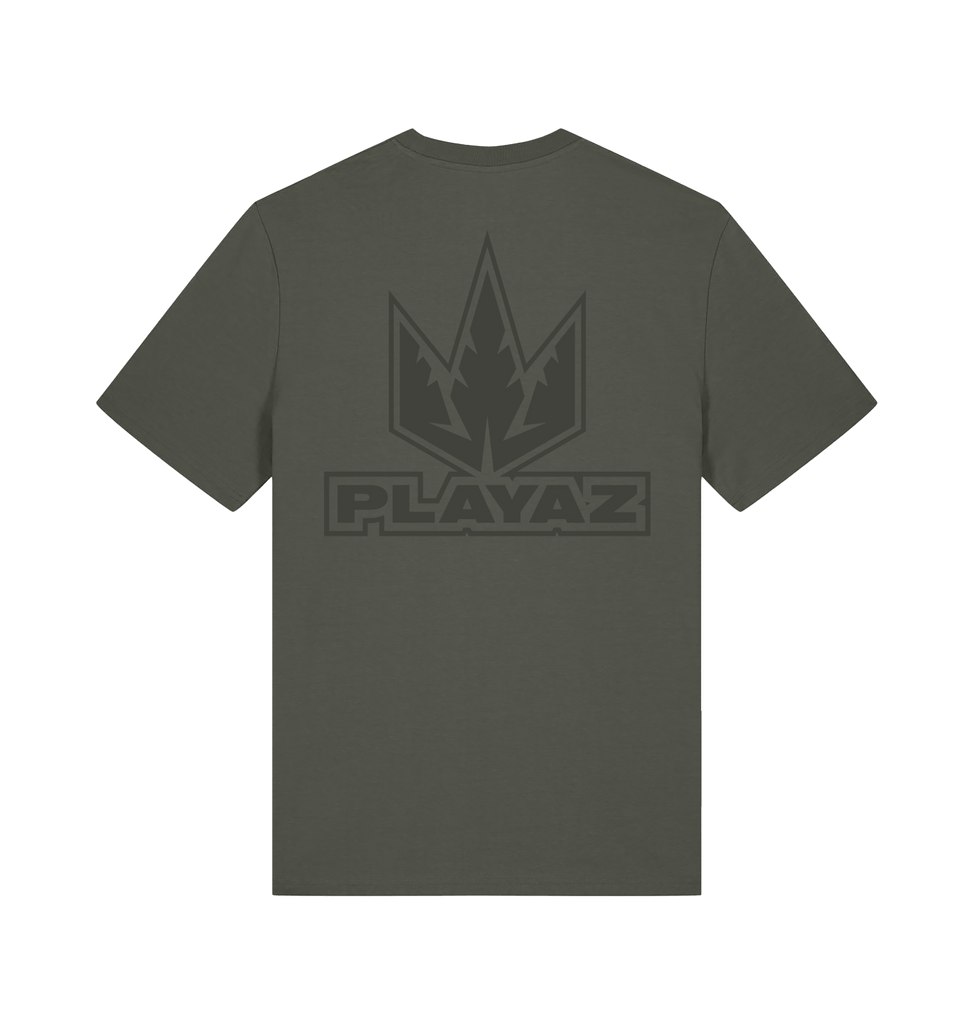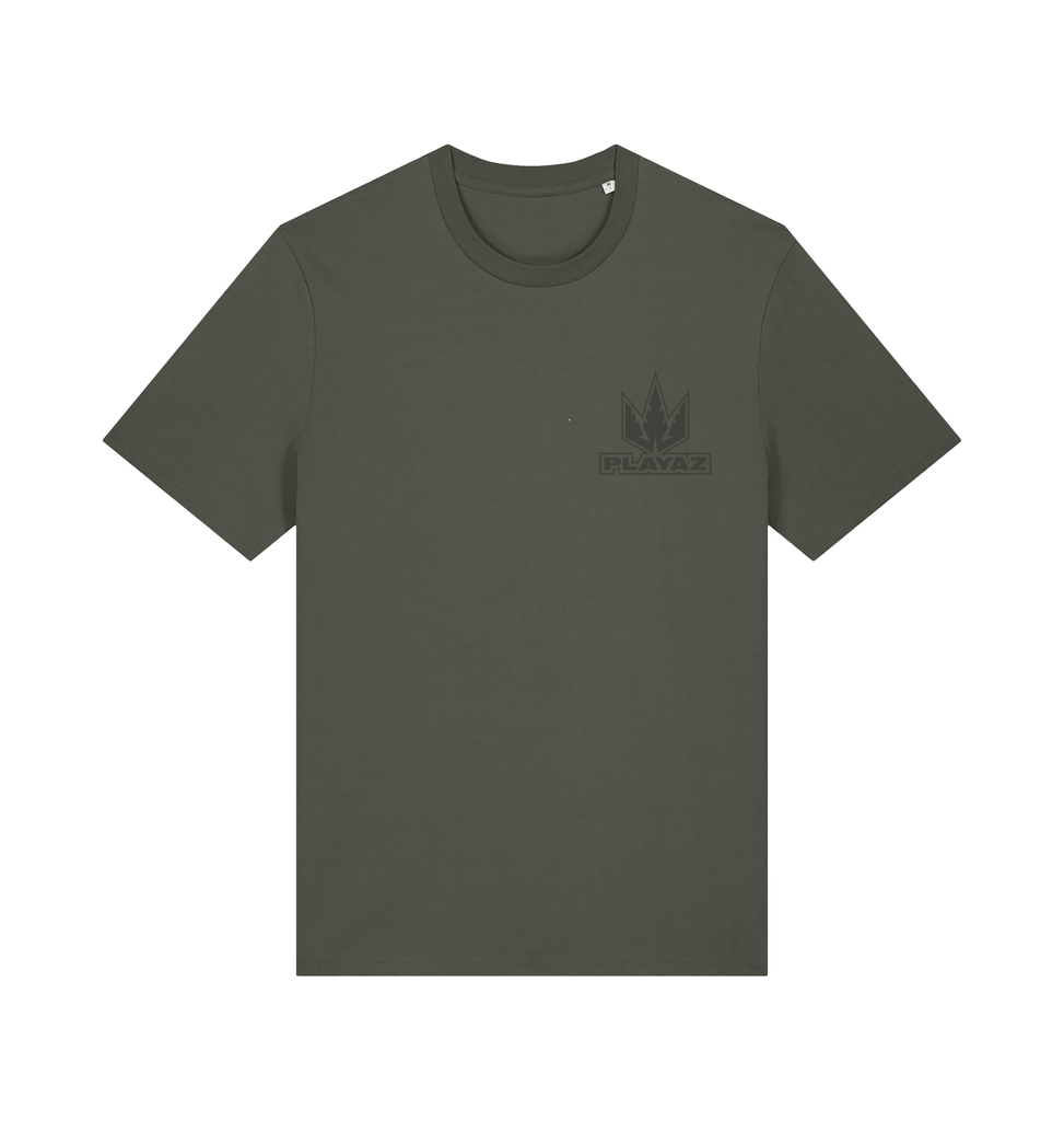This Khaki premium organic t-shirt features a tonal green Playaz logo on the left breast and a big logo on the back.